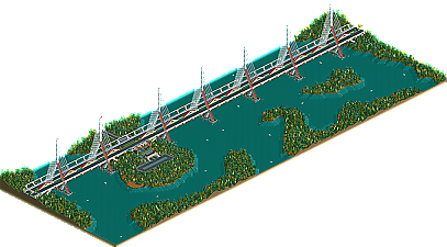 I was going for a different approach for this bridges from what we have seen in rct before. Most every bridge I have seen as the basic two or single tower design. I went with a different approach and was inspired by two bridges in particular. One was the new bridge in Boston for the basic support design and the other was the San Francisco Bay Bridge which is also very long and as you say, repetitive.