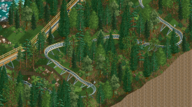 ~mixed feelings on the empty surroundings at the bottom of the mountain... it's kinda dull and gloomy. But at the same time I kind of like it... feels very clean and in many ways more realistic. Most forests, especially coniferous forests, aren't impenetrable jungles like they're often portrayed in RCT2.