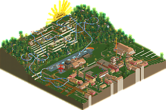 Pllaza Mayor de Cusco: Not sure if it's a typo or not but the only RCT2 park this round has LL in the title and I think that's very funny. Mad props to speed king Dubbya for the attempt to finish in a single day. Unfortunately the big black border was one of the first things I noticed, and measuring the map it doesn't exactly hit 2000 tiles which is a real shame. What's within those tiles though has a very subtle beauty and charm. SM came in clutch for those town blocks and really let you cram in those details fast. Love the unique suspended coaster with the single rail track and trains; just a shame you didn't have time for custom supports. The plaza is super nice as well with a lot of open space and natural beauty and I absolutely love the big llama shape. Unfortunately I have to point out the obvious; y'all didn't get to wrap it up and finish it. Still respect the attempt though, and both of you are in finals so there's really no harm in submitting. Makings of a very very nice little design here.