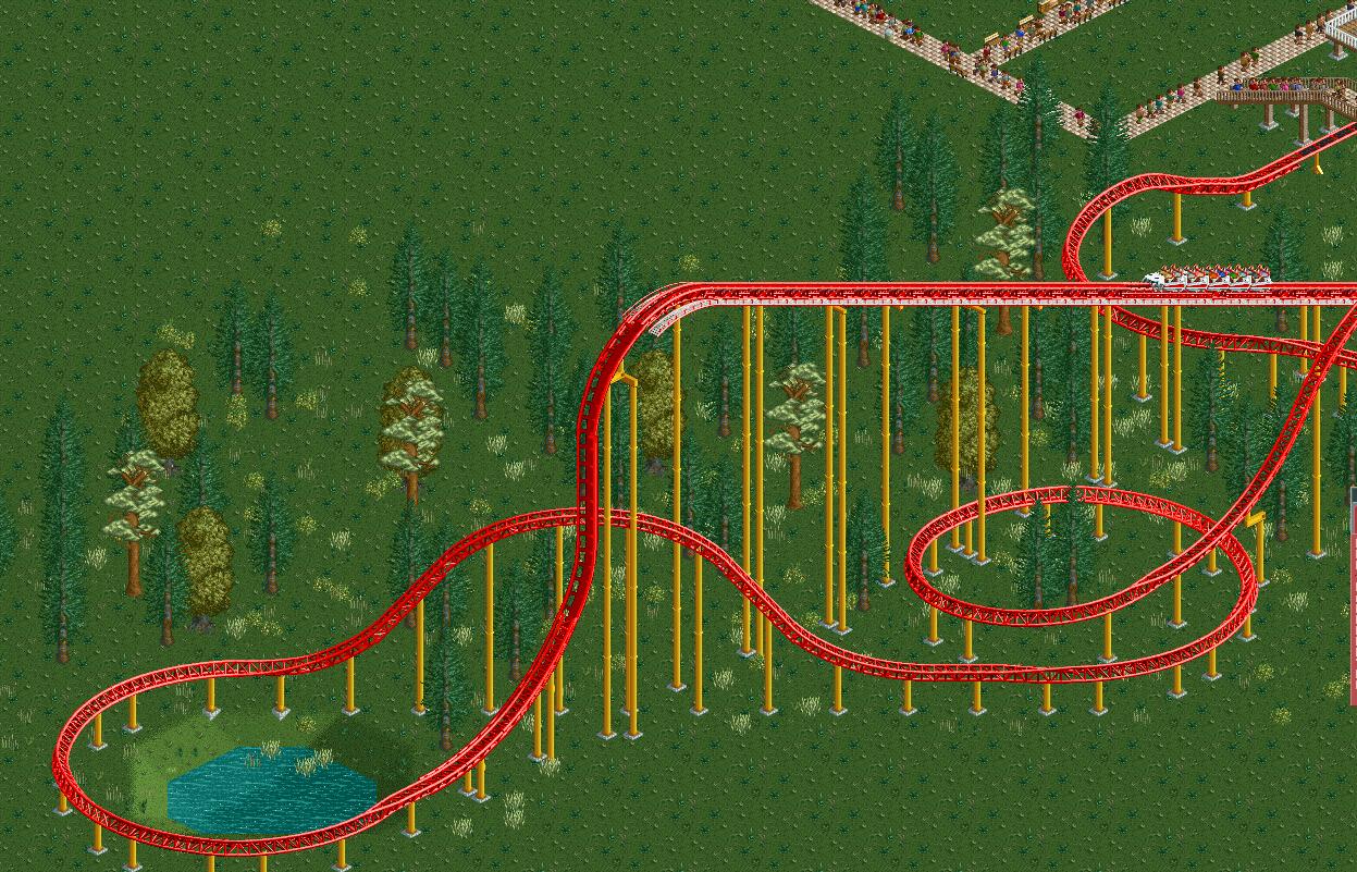 Just wanted to show this, since I know most of you guys here are not using openrct. I still use RCT2 to do invisible entrance hacks, but the zero clearance hack in openrct is that much better; hence no white glitches and even scenery path tiles can be placed without glitches and mom. -