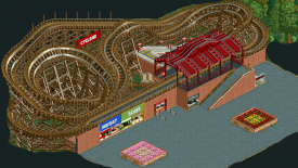 Coaster: pretty cool Planter: too dense Brick wall along the coaster: great idea, love it Actual station: messy, bland Midway games: awkward placement Cyclone sign: overshadowed by everything, needs a more prominent place. MAybe on the coaster itself Overall: not bad
