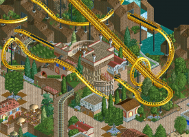 I feel like in this screen you put experimenting ahead of creating a pretty scene. Architecture is too incohesive, and the landscaping looks a bit underdeveloped. That coaster queue has potential but it needs something. The screen needs something, to tie it all together.