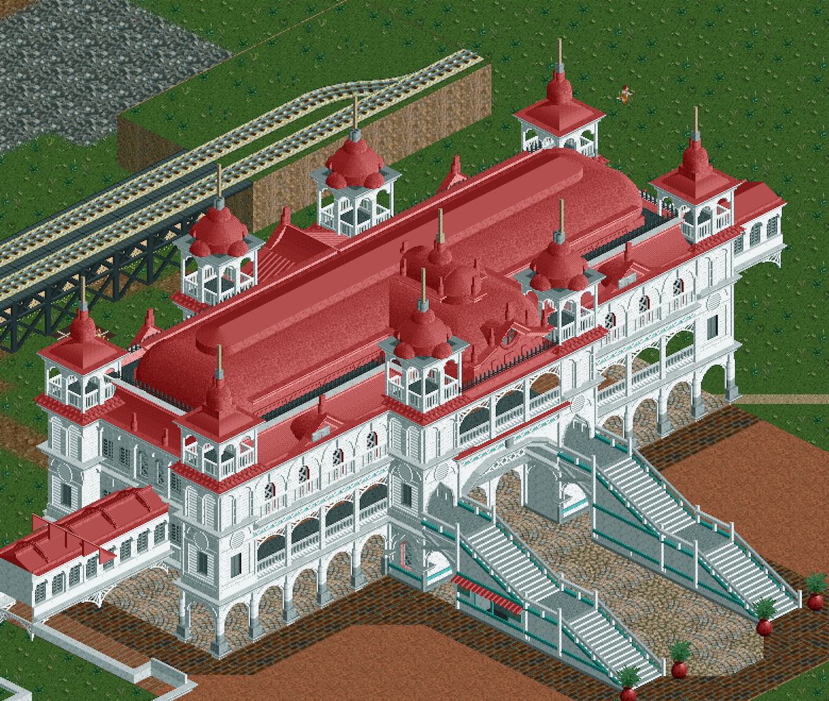 Great work so far. Definitely has a DLP hotel feel from pictures I have seen. Just add some color to the roof details. It looks like it is all on one level right now.