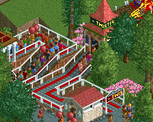 This area is the most detailed part of a map i started with the intent of making a very-large (215x215) pretty open scenario map. Ideally wishing to make some path layout, transport rides, shops and stall but only 1 or 2 rides at start, objective being make X coaster with X ratings following or not the story that goes along. I have made several of these maps already, increasingly big with only few areas detailed while the landscape is just a shape but this is the one i used the more CSO and spent the most time on.