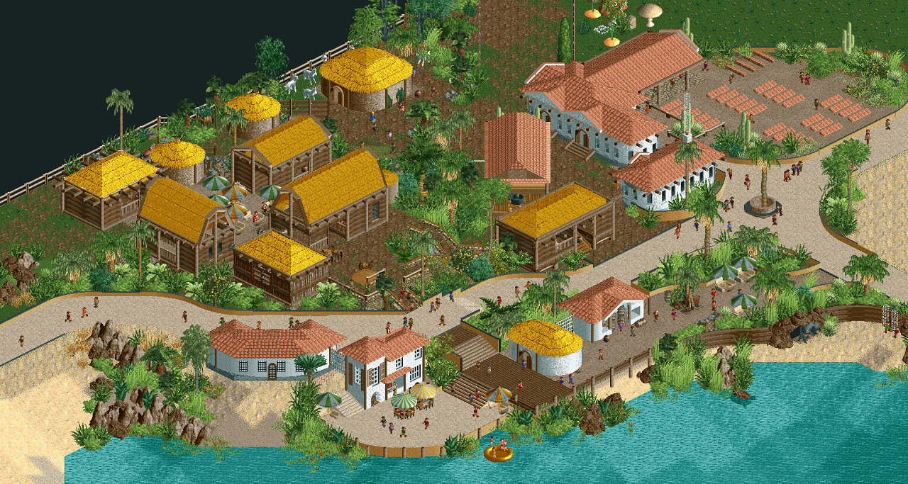 Hello. You’re already great. But some things could perhaps see improvement. Maybe have your fencing contour the path more (not just on the flat curves and diagonal areas, but also on the upward and downward slopes). Maybe smooth out the transition with the rocks and the sand on the bottom left of the screen. I’m wondering if a rule around here could be added to with that rule being darker and taller trees more centered in clumps of vegetation while becoming lighter both in color and in the amount of vegetation which grows shorter as it spreads out. I’m not sure. More cacti? I only see one? Maybe work on the palette of the area then. I always liked the idea of limited palettes as perhaps that allows a more cohesive appearance. Or ignore me. Most do. Just have fun and work with a lot of thought in every object placement, as it seems you do. Have a direction and a vision as it seems you also do. Download tons of parks and study them. Pretty much everyone here does incredible things with this game. And keep it up with the story-telling. Adds depth. And no matter what, build for yourself. Don’t get sucked into treating it like a career. That’s always hilarious. Be yourself and make your work special. If you stick out as unique, you won’t get lost in a sea of fish. You’ll be a shark. Enjoy.