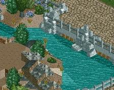 I like this! Love the tiny scale here, it works because you're consistent. The bridge is a bit underdone though. The pond is so little the bridge doesn't really work. It needs a little more context. Can be a single tile wide stream.