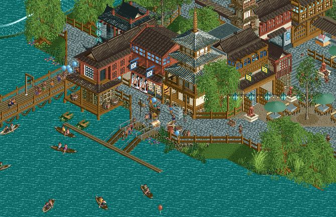 I love how distinct each floor of the buildings are. The vanilla objects are woven in so well. Perhaps the lanterns could be on an empty cable to reduce the visual noise but fantastic screen overall.