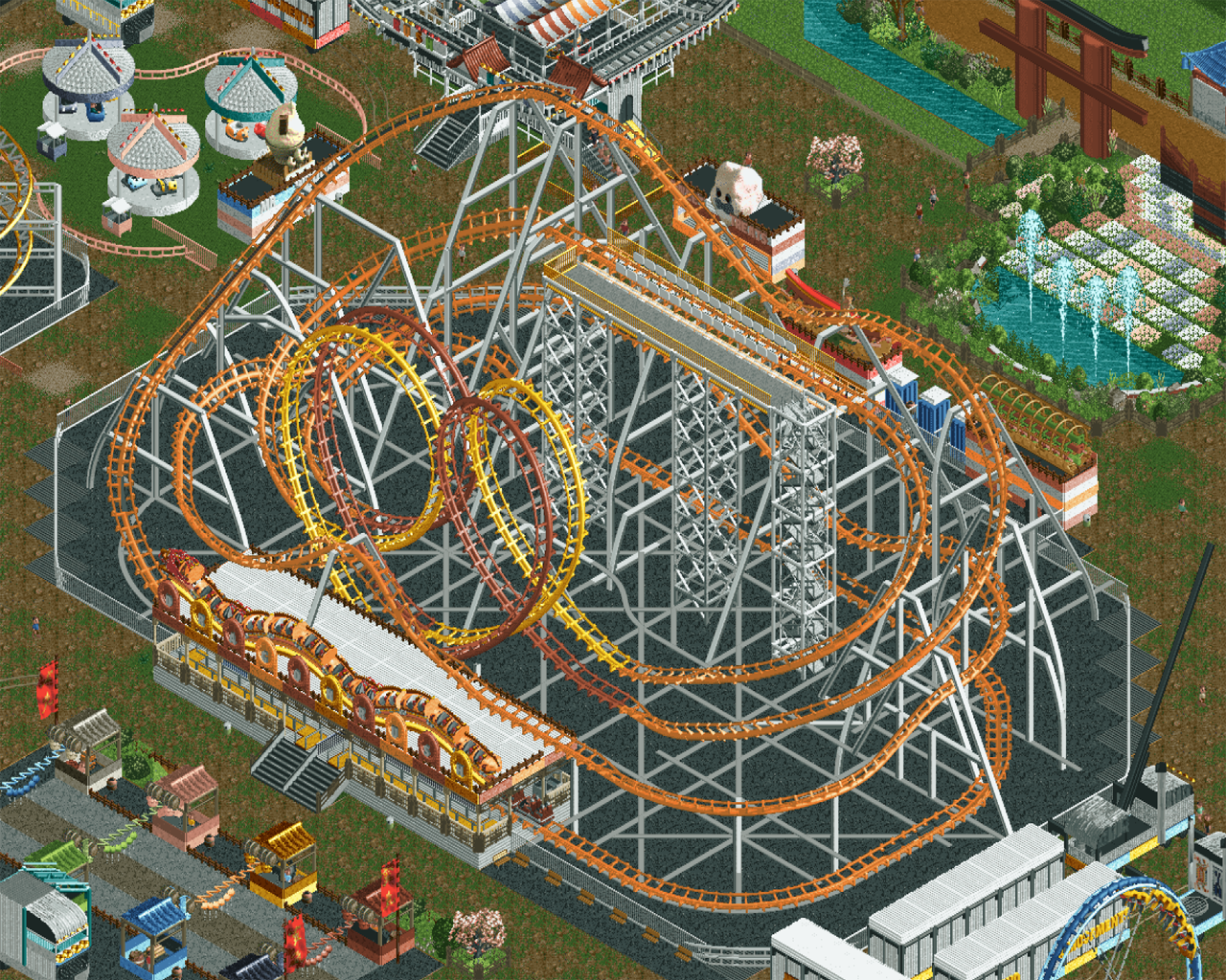 There's a lot of cool things in this screen, the game stalls, the coasters, the flower display. And I enjoy the peeps walking on the dirt grass. Good job.