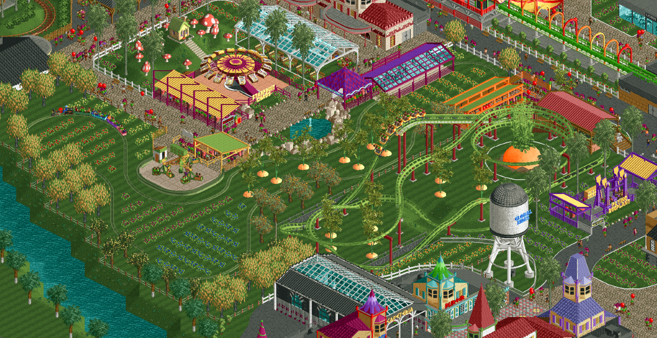 Lots of fun things happening, the water tower, the farm style rides, the giant carrot. Looking great!