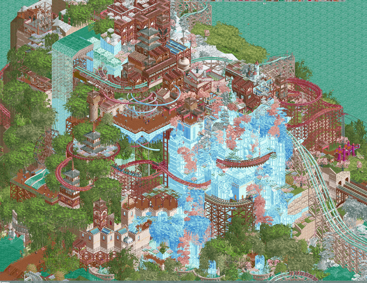 This is my favorite NE comeback in a long long time. Just absolutely spellbinding stuff here, love the verticality and maximalism. DKSO really does feel like a logical next step in your style considering your proficiency with NCSO in the past. Tubiao palette does a lot of service to this screen aesthetically, even barring the f.lux issues you mentioned in the Discord. It really ups the dreaminess of this screen you already capture with the varying sections that blend together, the lush greens, and the big bold trans flag colors.