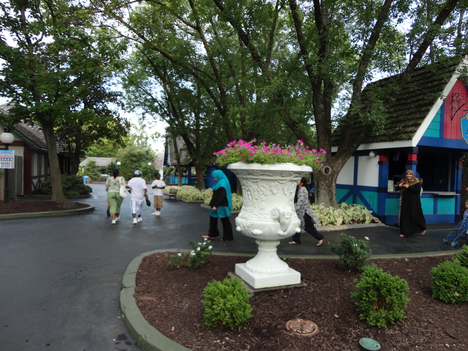 worlds of fun has trees that overhang the path, and, at least in the entrance, a really classy, old-school vibe.